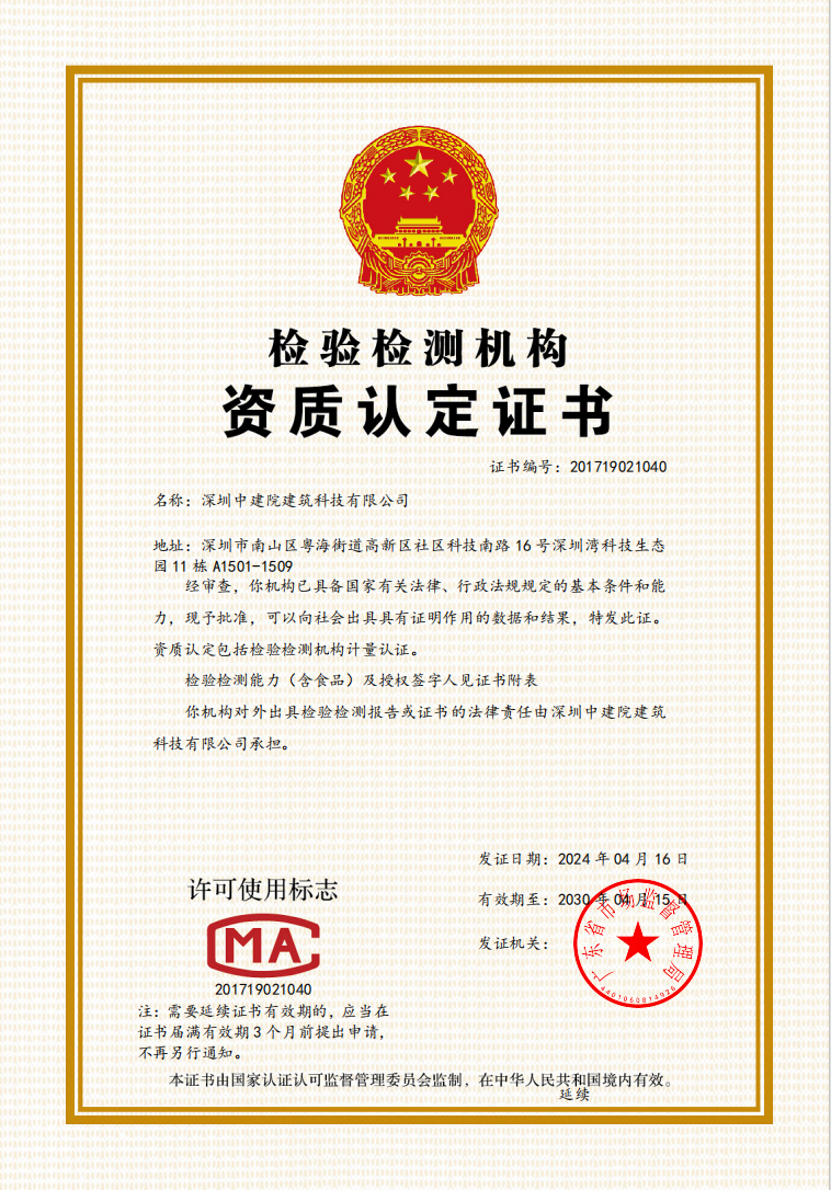深圳中建院綜合檢測實驗室建設(shè)工作進(jìn)展順利,建筑節(jié)能、綠色建筑新增項目已取得CNAS 、CMA資質(zhì)擴(kuò)項證書,幕墻實驗室已完成設(shè)備主體安裝工作,繼續(xù)進(jìn)行資質(zhì)能力建設(shè)及部分新增項目擴(kuò)項審核工作。