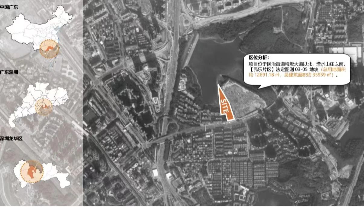 項目位于龍華區(qū)民治街道梅坂大道以北,瀅水山莊以南。南側(cè)、西側(cè)和東側(cè)為二類居住用地,北側(cè)為水庫水面。學??傆玫孛娣e12691.18平方米,總建筑面積約35959平方米,擬建設一所36班/1620學位小學。