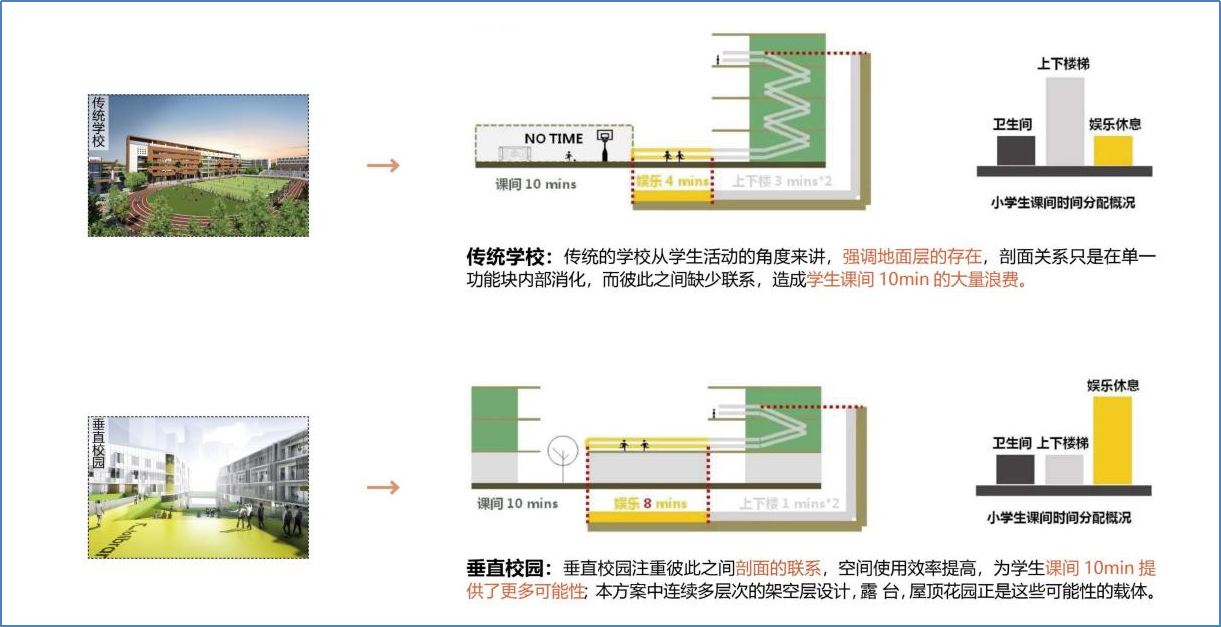 項目周邊交通便捷,生活便利,人口密集,自然景觀豐富,為打造“綠色校園”和“文化校園”提供了良好的基礎。項目組通過連廊設計,將不同空間相互串聯(lián),打造多層次的立體花園景觀,在平面與垂直方向上創(chuàng)造最大化的交往平臺。利用屋頂平臺設置公共空間,將空間還給學生,創(chuàng)造以互動為核心的自然課堂等設計手法打造多元一體化校園,建成后將為龍華區(qū)師生提供一個寓教于樂的理想樂園。