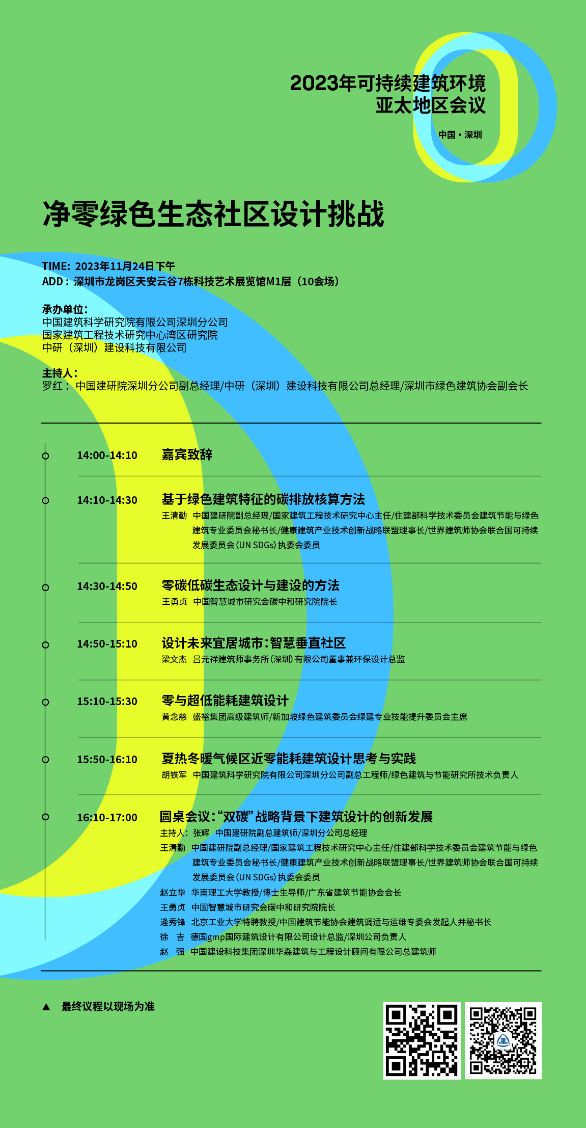 為貫徹落實國家綠色發(fā)展理念和“雙碳”目標,加快推進建設(shè)領(lǐng)域可持續(xù)、高質(zhì)量發(fā)展,由深圳市人民政府主辦,深圳市住房和建設(shè)局、深圳市發(fā)展和改革委員會、深圳市龍崗區(qū)人民政府共同承辦,深圳市綠色建筑協(xié)會作為執(zhí)行單位參與組織的“2023年可持續(xù)建筑環(huán)境亞太地區(qū)會議(SBE23 Asia—Pacific)”將于2023年11月23—24日在深圳龍崗區(qū)天安云谷舉辦。大會聯(lián)合中國建研院深圳分公司、國家建筑工程技術(shù)研究中心灣區(qū)研究院、中研(深圳)建設(shè)科技有限公司,共同發(fā)起“凈零綠色生態(tài)社區(qū)設(shè)計挑戰(zhàn)”主題論壇,誠邀廣大業(yè)內(nèi)人士共同參與。
