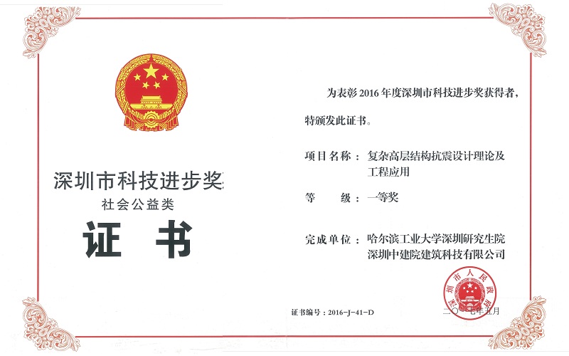 2017年 9月21日下午,深圳召開全市科學技術(shù)獎勵大會,市長陳如桂主持大會,省委常委、市委書記王偉中出席大會并講話,副市長艾學峰通報全市創(chuàng)新驅(qū)動發(fā)展情況,并宣讀關(guān)于頒發(fā)2016年度深圳市科學技術(shù)獎的通報。其中,以哈爾濱工業(yè)大學(下稱哈工大)滕軍教授和我院深圳中建院建筑科技有限公司(下稱中建院)何春凱研究員等作為主要參與人,哈工大和中建院共同完成的課題《復雜高層結(jié)構(gòu)抗震設計理論及工程應用》榮獲2016年度深圳市科技進步獎一等獎。