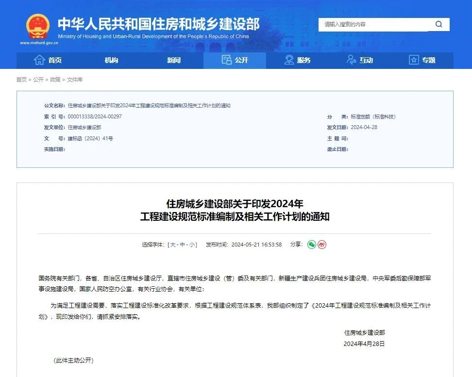 近日,住房城鄉建設部印發《2024年工程建設規范標準編制及相關工作計劃》,中國建研院及所屬單位獲批承擔36項標準項目及專項工作,是城建建工領域承擔項目數量最多的單位。
